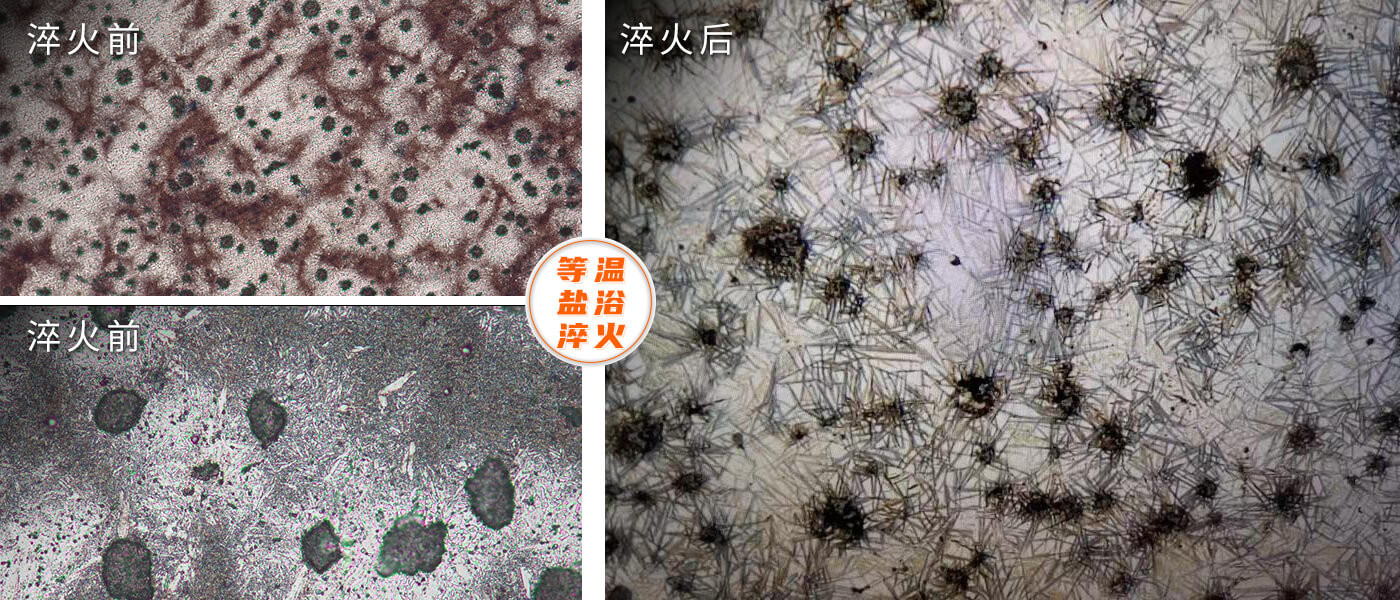 等溫淬火是指工件淬火加熱后,長(zhǎng)期保持在下貝氏體轉(zhuǎn)變區(qū)的溫度,使之完成奧氏體的等溫轉(zhuǎn)變,獲得下貝氏體組織的淬火方式。實(shí)際是分級(jí)淬火的進(jìn)一步發(fā)展,所不同的是等溫淬火獲得下貝氏體組織。下貝氏體組織的強(qiáng)度、硬度較高而韌性較好,故等溫淬火可顯著提高鋼的綜合力學(xué)性能。方盾公司于2021年11月引進(jìn)目前在國(guó)內(nèi)先進(jìn)的鹽浴等溫淬火爐,可有效提高等溫淬火的加熱溫度,提高奧氏體的穩(wěn)定性和增大其冷卻速度,防止等溫冷卻過(guò)程中發(fā)生珠光體型轉(zhuǎn)變,從而達(dá)到穩(wěn)定高效地進(jìn)行工件貝氏體淬火。